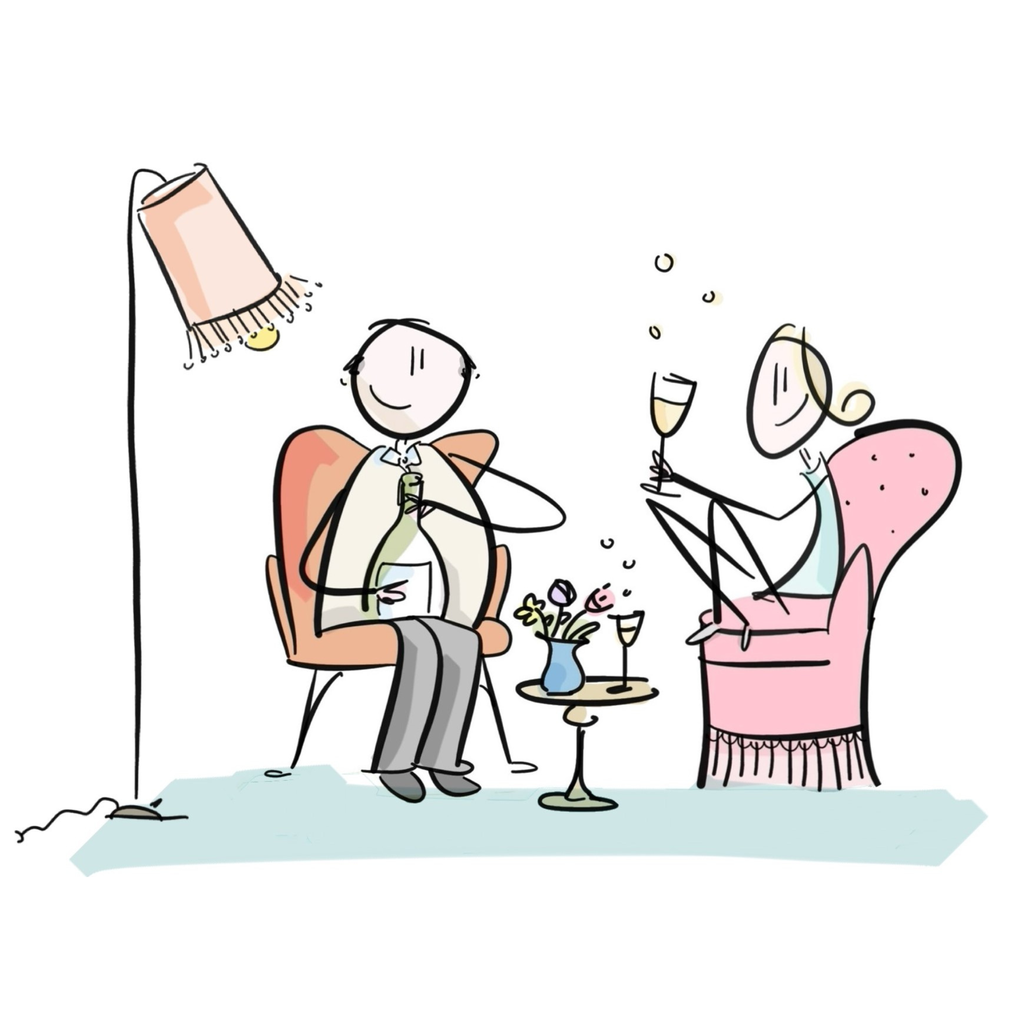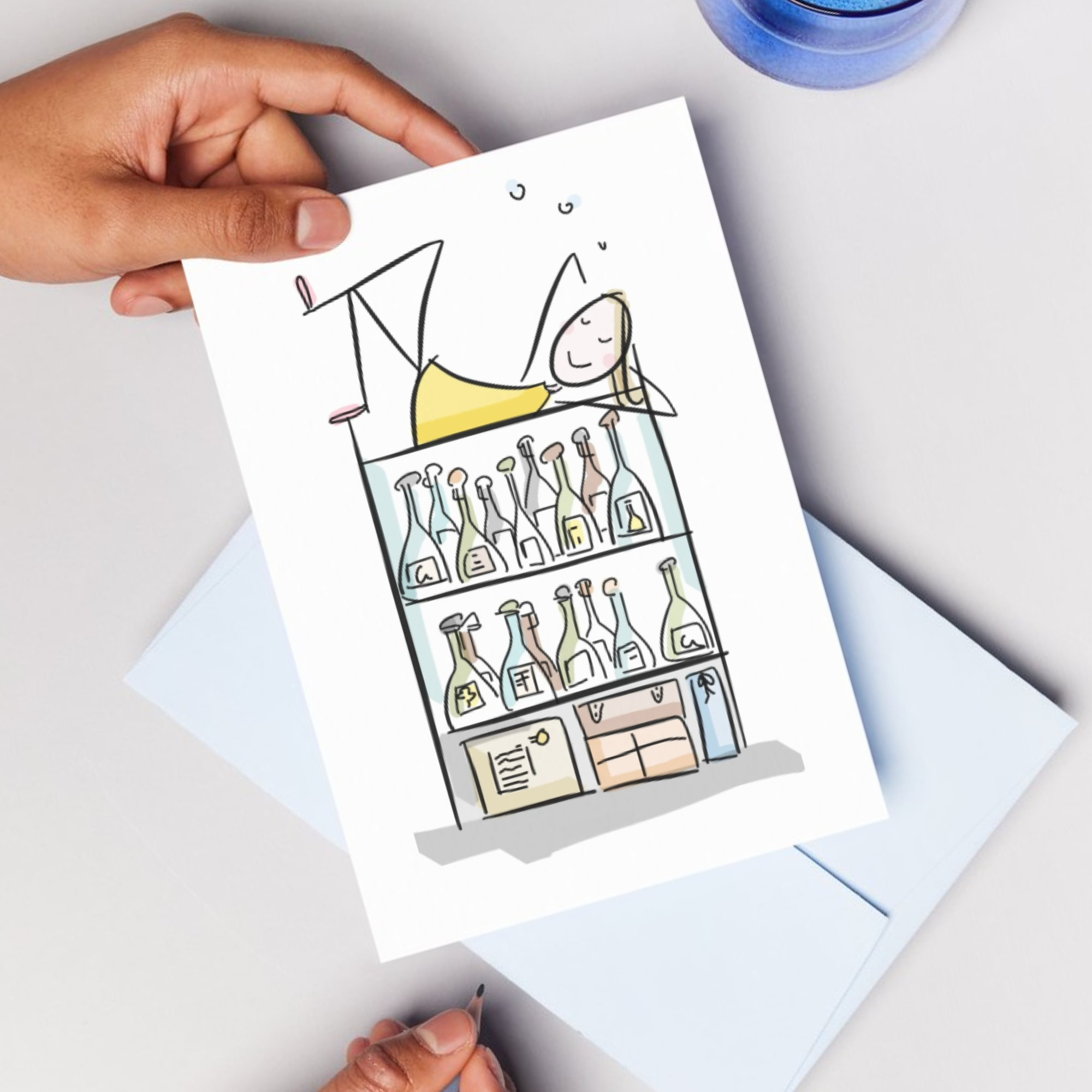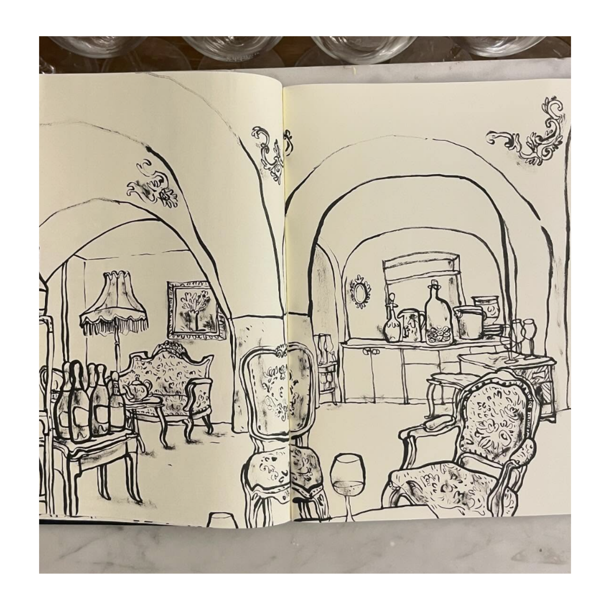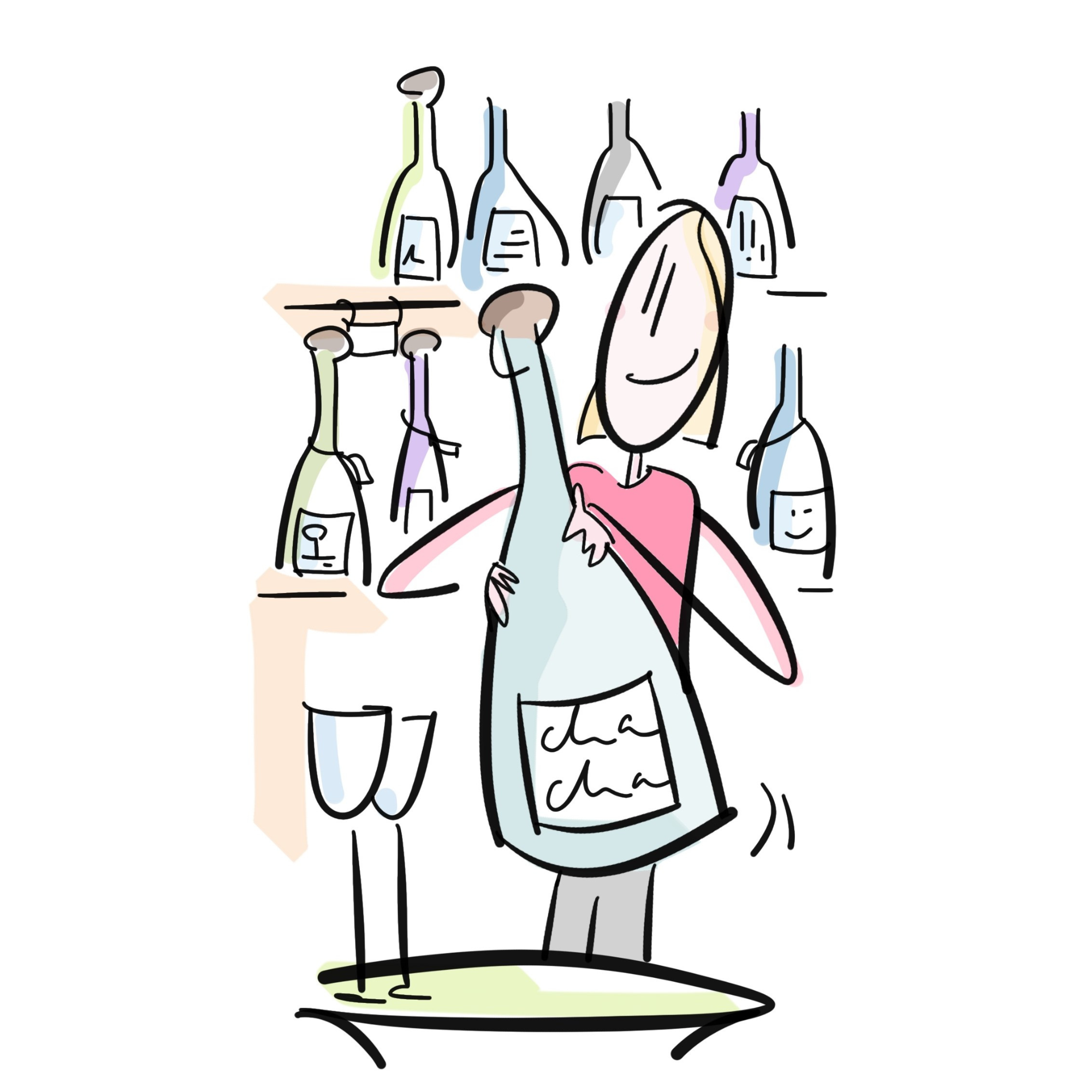 Für Champagne Characters ist sie persönlich in die Boutique gekommen und hat den Charm und Lebensfreude des Ladens mit ihren Zeichnungen eingefangen.