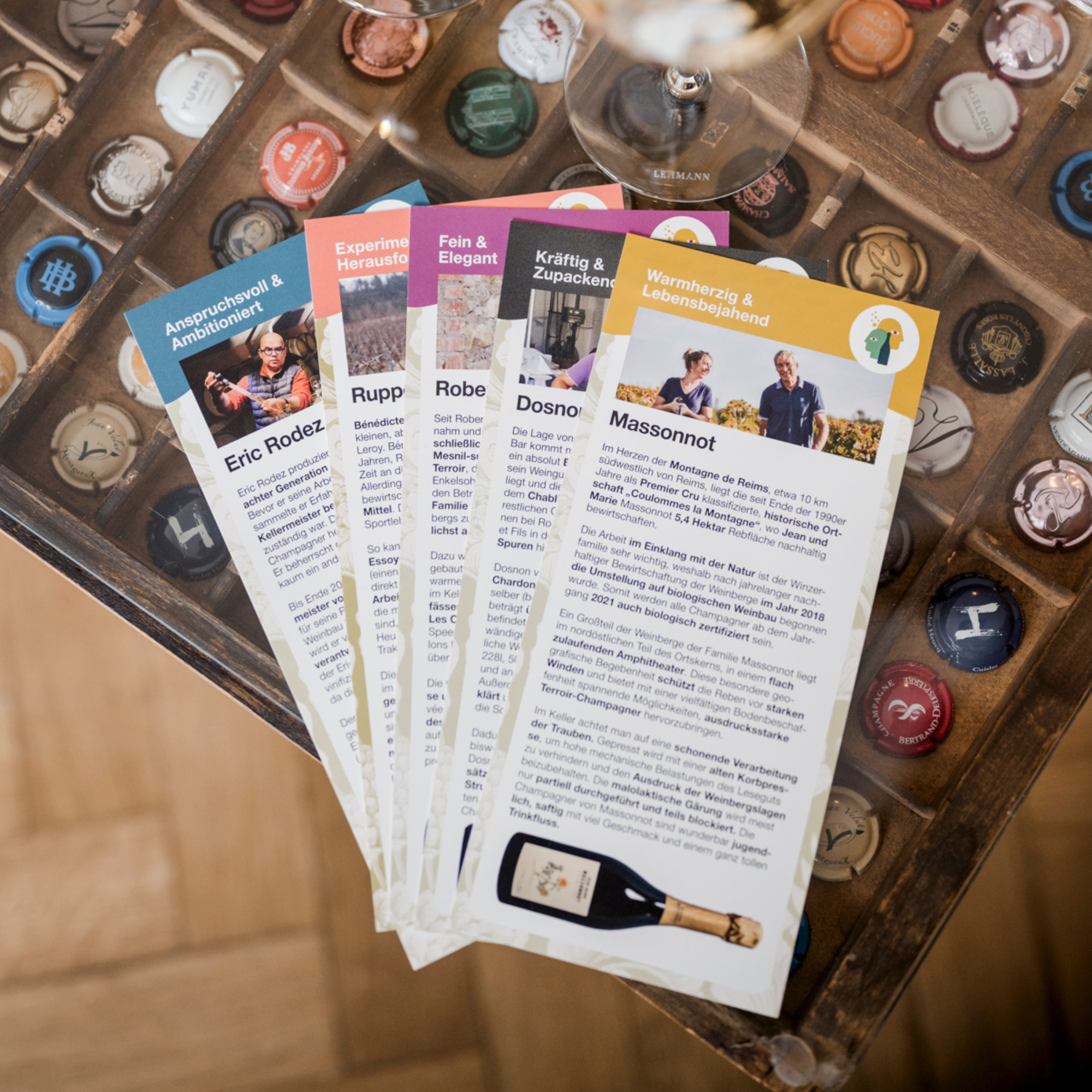 Zu jedem Weingut erstellen wir eine Karte mit gut recherchierten Backgroundinfos zu den Winzer:innen, deren Familiengeschichten, An- und Ausbauweißen sowie Philosophie.
