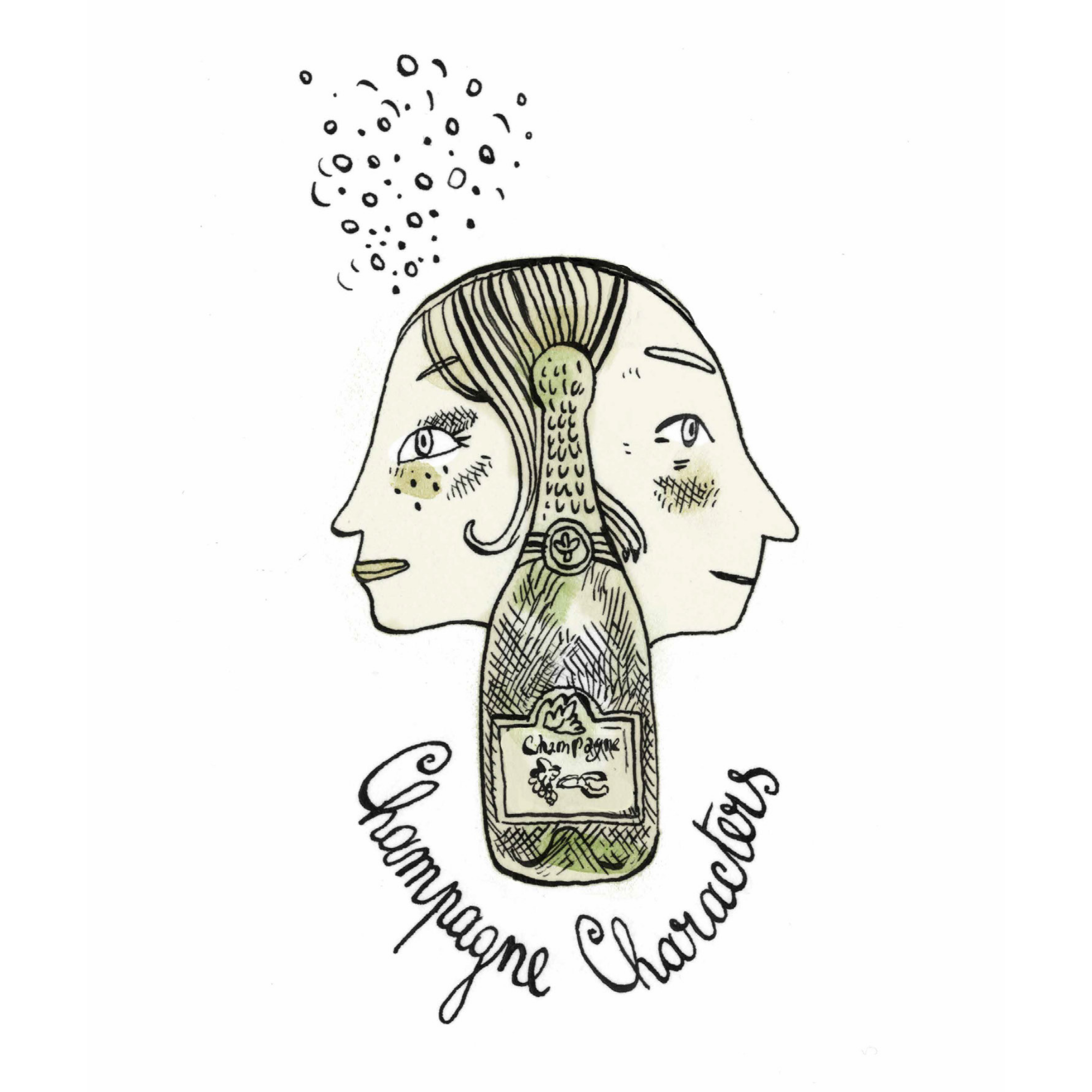 Für Champagne Characters entwarf er mehrere Variationen des Logos in seinem persönlichen Stil.
